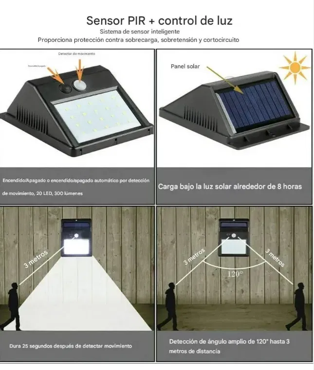El reflector Aplique LED Panel Solar Sensor Movimiento de Solar Mania es una solución ideal para quienes buscan iluminar espacios exteriores de manera eficiente y sustentable. Con sus 20 LEDs y una potencia de 20 W, este reflector ofrece una luminosidad potente y clara, perfecta para iluminar jardines, patios y entradas. Su diseño permite una fácil montaje en diversas superficies, asegurando que puedas ubicarlo donde más lo necesites.