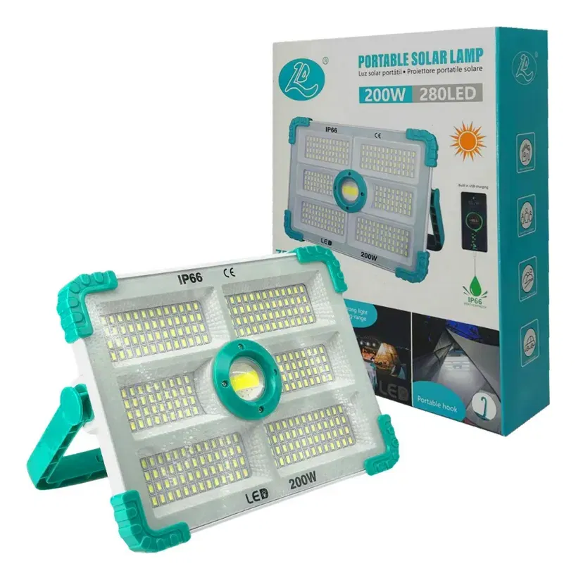 Reflector Lampara Solar 280 Led 200w Recargable Hogar
