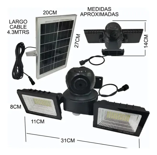 Con dimensiones de 20.5 cm de altura, 15 cm de ancho y 15 cm de profundidad, este reflector es compacto pero muy eficiente. Haz de tus espacios exteriores lugares iluminados y seguros con el Reflector Solar Led Doble Sensor Control Remoto, una inversión en funcionalidad y eficiencia energética.