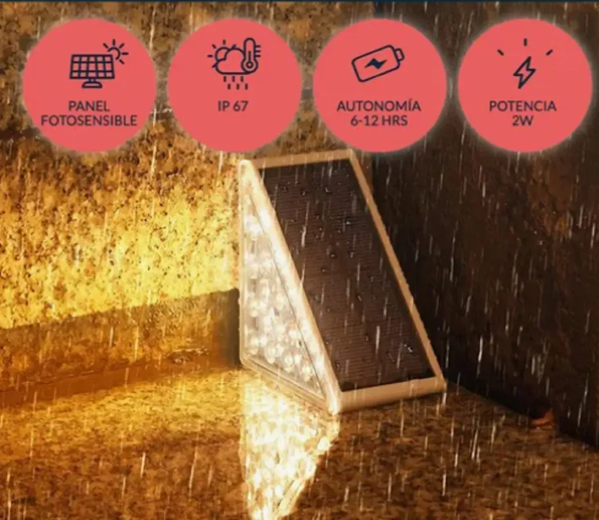 Con luz cálida (3000K), brinda una iluminación suave y acogedora. Funciona 100% con energía solar, lo que lo hace ecológico y económico, sin necesidad de cableado. Además, es resistente a la intemperie , perfecto para soportar lluvias y condiciones exteriores.